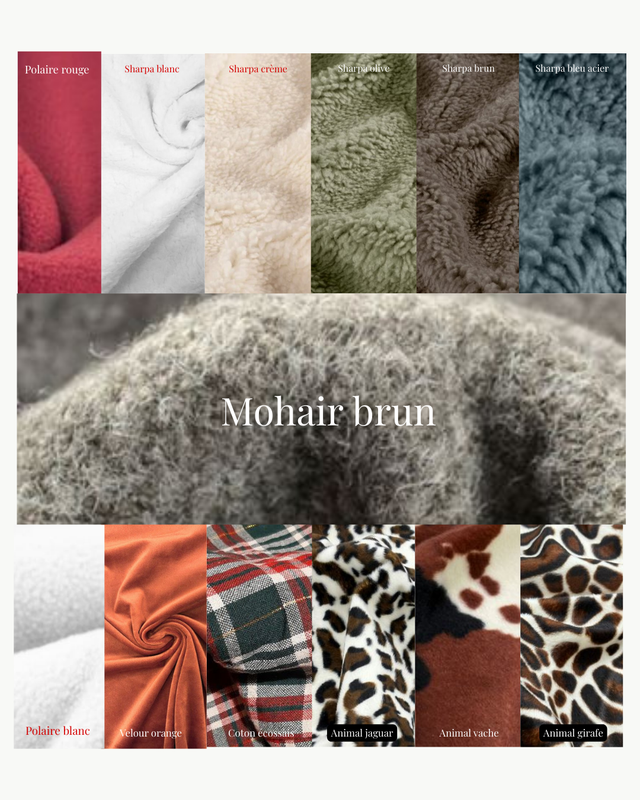 Chaque capuche est réalisée à la main, une à une. Pas de production en série ni de chaîne automatisée : chaque pièce prend le temps nécessaire pour être bien faite, avec des matières choisies pour leur douceur et leur propriété.